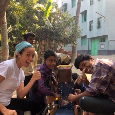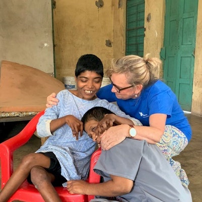 Well, after an exciting arrival, yummy dinner, hot shower and a good night's sleep, our first working day at AN began with a visit to each of the homes/shelters where we were once again warmly welcomed by all the residents and staff who were so happy to see us and excited as they know that "fun things" happen when Equal Health volunteers arrive. Our days at AN were jam packed and full-on, but we achieved so much, thanks to the ease with which we all worked together, shared our skills and just got in there, and did what we wanted and needed to do. We worked hands-on with residents like Mou, Moru, Sita and Akhtar, we altered and fixed wheelchairs, Beth tested resident's hearing, we applied lice treatment to 140 residents' hair; we ran art, craft, physical activity, and drumming and movement groups with the girls and boys; we purchased clothes for the boys, clothing fabric for the girls and sports equipment for the boys and men; etc., and while doing all of that, we spent time, quality time, with each of the residents, which is the most fulfilling and heartwarming part of the volunteering experience at AN!